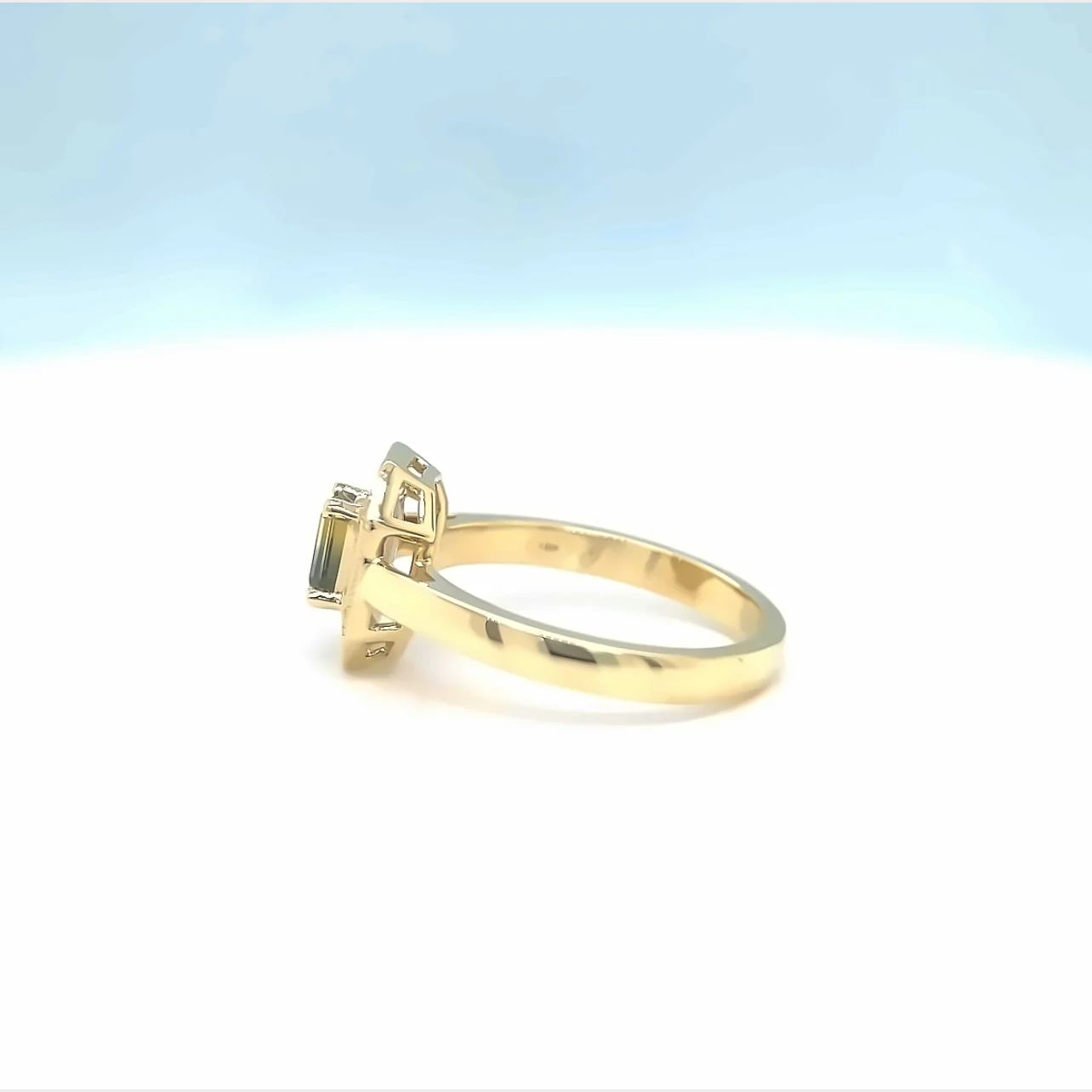Centre Stone: An emerald cut Australian parti sapphire, 0.56 ct.