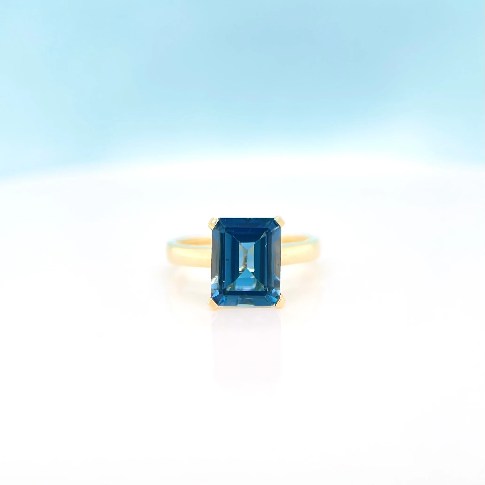 Centre stone: London blue topaz 4.02ct, emerald cut 10x8mm